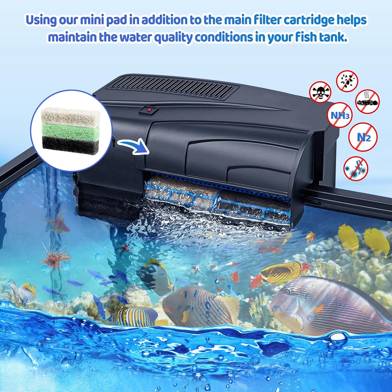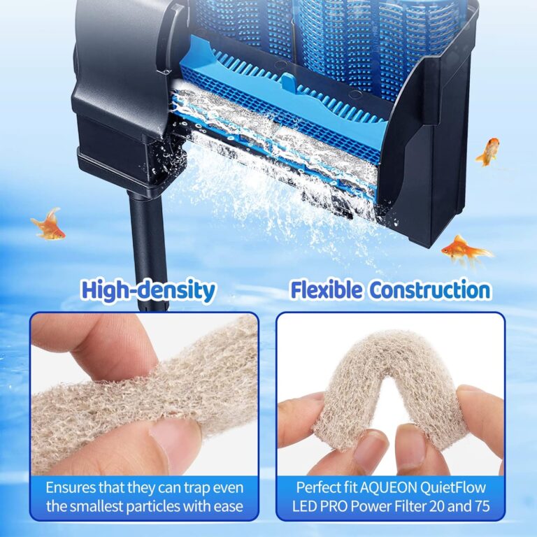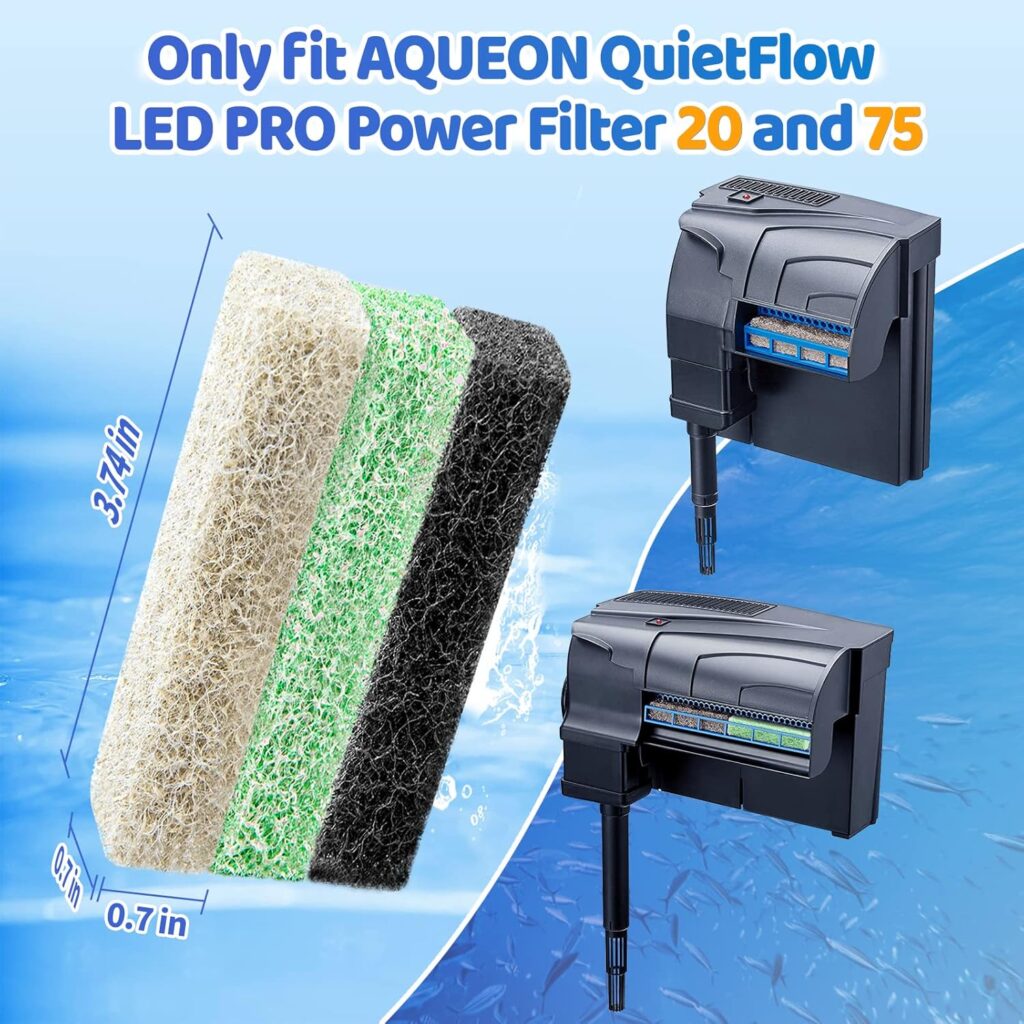 • 🐟Perfect Compatibility for aqueon Filter: Our ammonia/carbon/phosphate reducer filter pads are very suitable for Quietflow 20 and 75 on the market. And the dimension of our filter pads is 3.75 x 0.7 x 0.7 inches. It contains 2 count ammonia reducer filter pads, 2 count carbon filter pads and 2 count phosphate reducer filter pads, you can replace approximately every 2 to 3 weeks. Use this minipad in addition to the main filter cartridge can keep your water healthy.
