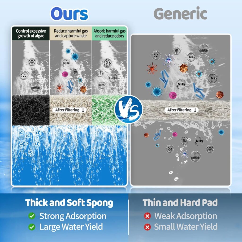 • 🐋Pre-cut for Easy Installation: The filter pads are pre-cut for easy and quick installation, or for quick replacement. Changing old and filthy filter pads takes less than 3 minutes, thereby improving time efficiency and doesn’t affect the overall water quality.【Kindly tip: For best performance, rinse before putting in the aquarium filter.】