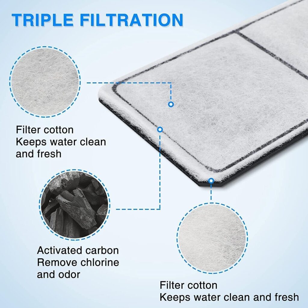 • Excellent Filtration Performance: The filter cotton is made of cotton and carbon and has 3-layer filtering effect, which can filter and absorb 99% of the sundries, so as to keep the water source clean and the healthy growth of fish.