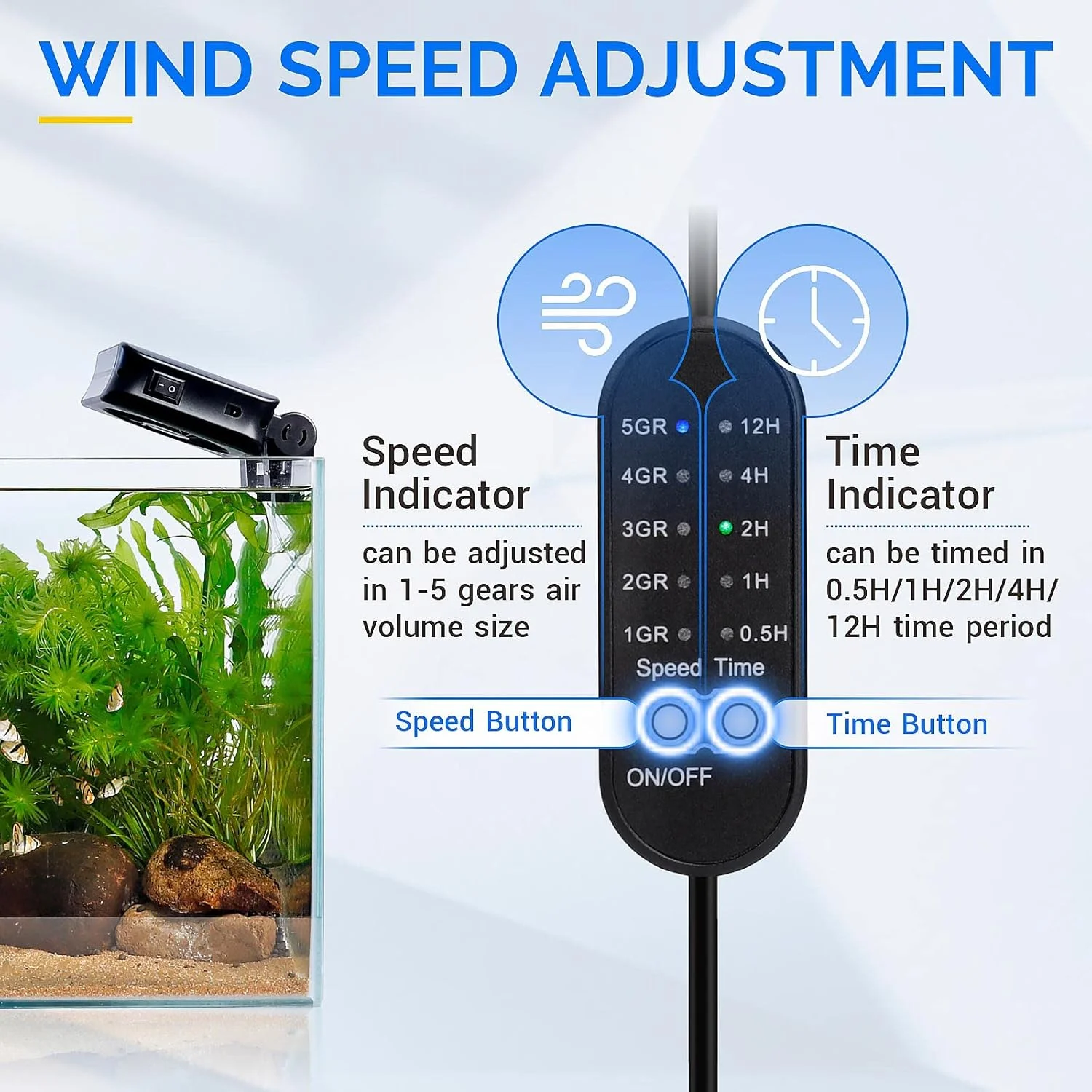 • 5-Speed Adjustable Aquarium Cooling Fan with Smart Timer Control