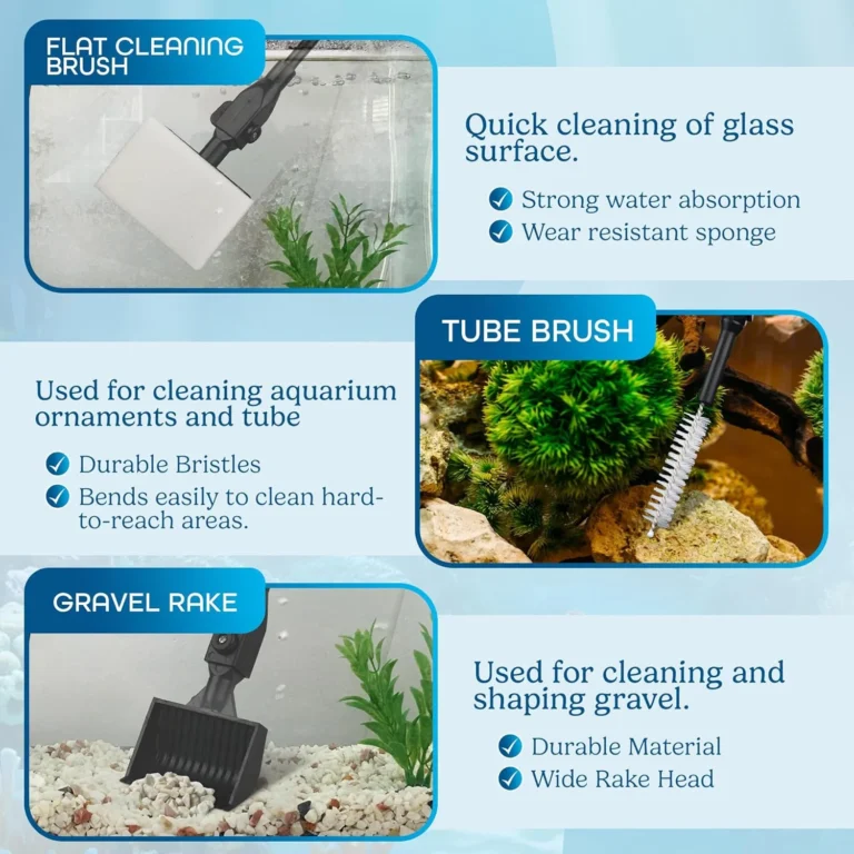 DURABLE AND LONG-LASTING: Built with high-quality materials, our aquarium cleaning tools are made to last. Whether you’re tackling algae, cleaning gravel, or polishing your tank’s glass, these tools can handle the job without breaking a sweat.