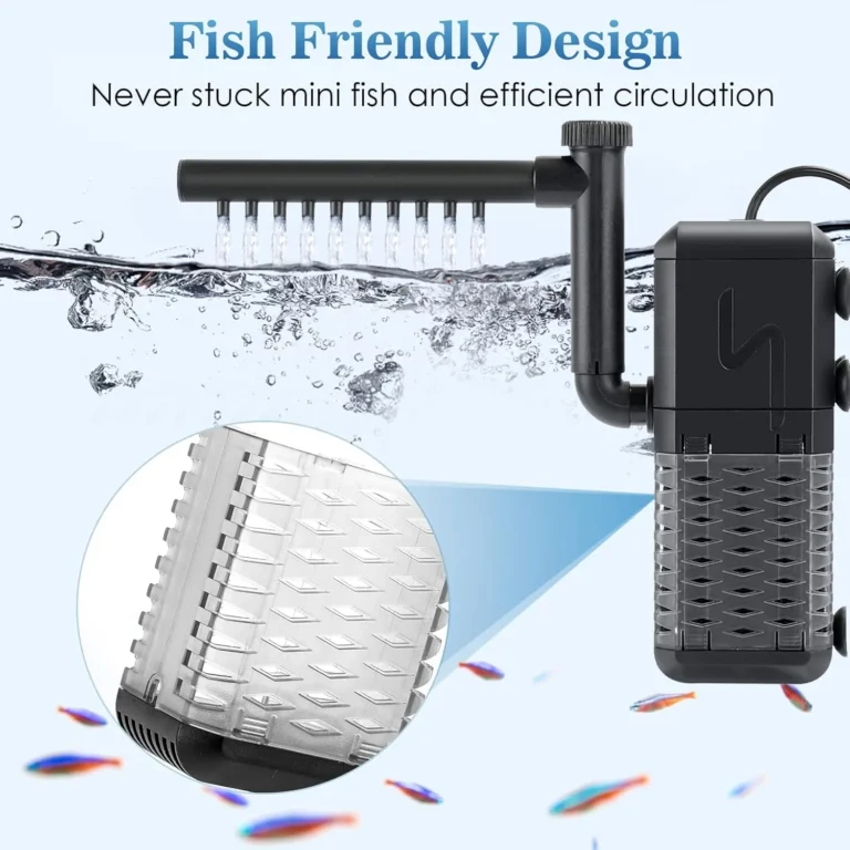 Easy to Use: The fish filter is easy to assemble and disassemble, suitable for fish tank, turtle tank, shrimp tank, etc. Stainless steel motorimpeller allows use in freshwater and saltwater. Tips: the pump suggests submerged in the minimum water level while working.