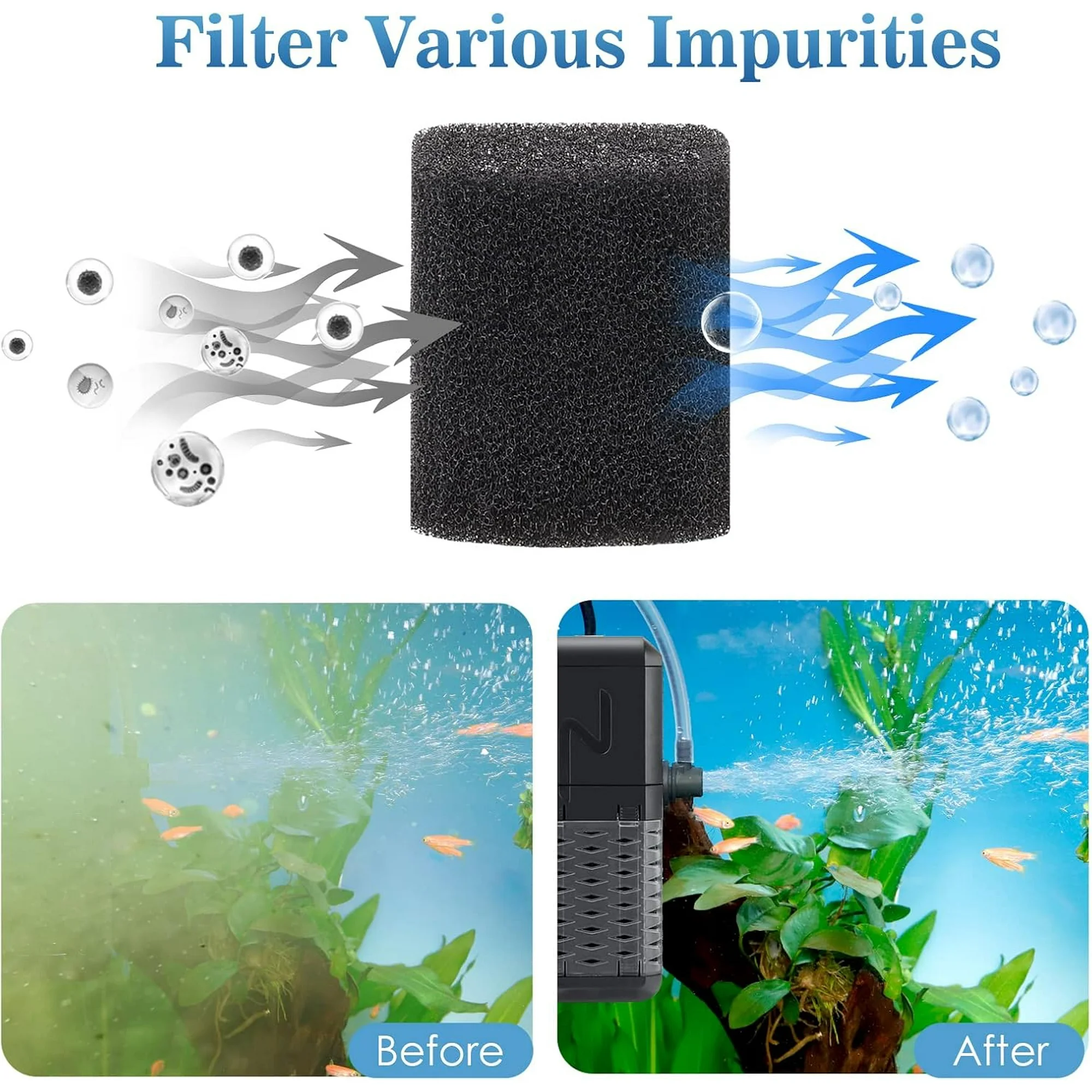 Never Stuck or Killed Fish: This aquarium filter has a fish-friendly design, small and dense holes never stuck fish and ensure efficient water circulation.