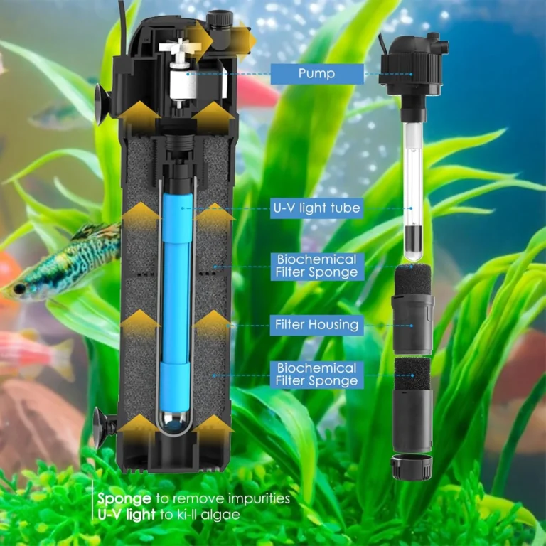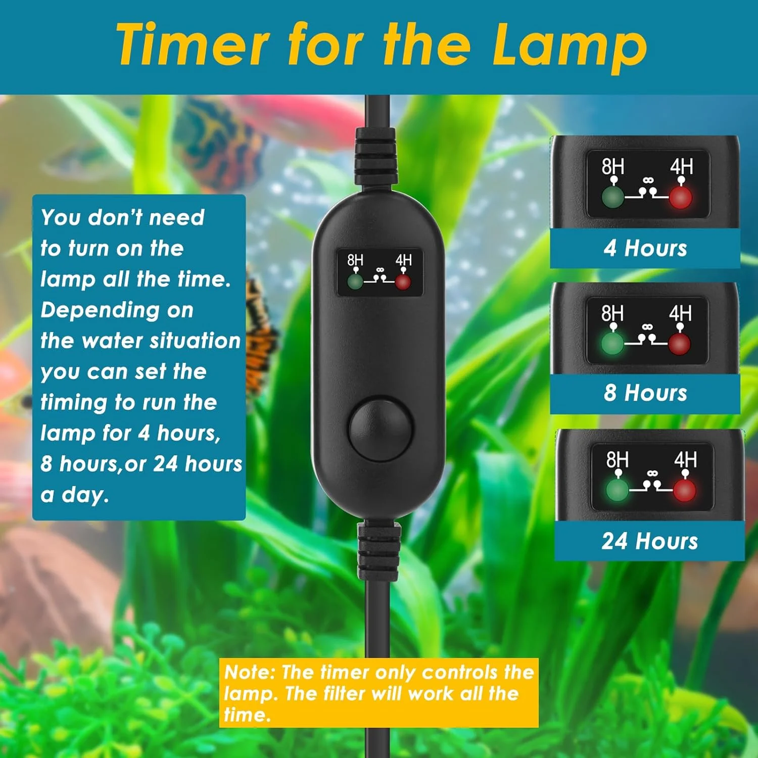This fish filter is more than just a filtration device; it’s a comprehensive system that enhances oxygenation and circulation within your tank, creating a thriving aquatic environment. The adjustable flow rate allows you to customize the water flow to suit the specific needs of your fish and plants, ensuring optimal growth and health. With this filter, your display pool will maintain a bright and clear appearance, offering your aquatic pets a pristine and hygienic living space. Additionally, the built-in timer adds a layer of convenience, allowing you to control the lighting with options to automatically turn on the lamp every 4, 8, or 24 hours. This feature eliminates the hassle of manual operation, ensuring your aquarium is always properly illuminated without wasting energy. Whether you are nurturing a delicate ecosystem or simply want a beautiful and clean display, this fish filter is designed to meet all your aquarium needs.