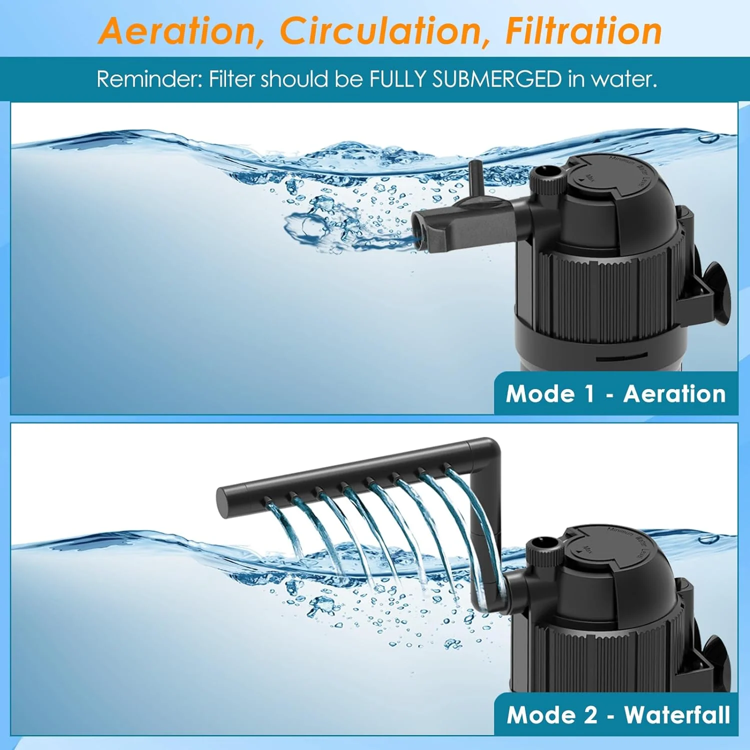 🐟Aquarium Must-have: The U-V filter pump can be installed anywhere in a pond or aquarium. But the pump should be completely underwater, so that the water can fully pass through the U-V lamp, and the filtering effect is obvious. Running without water is loud and the sound will disappear in the water.