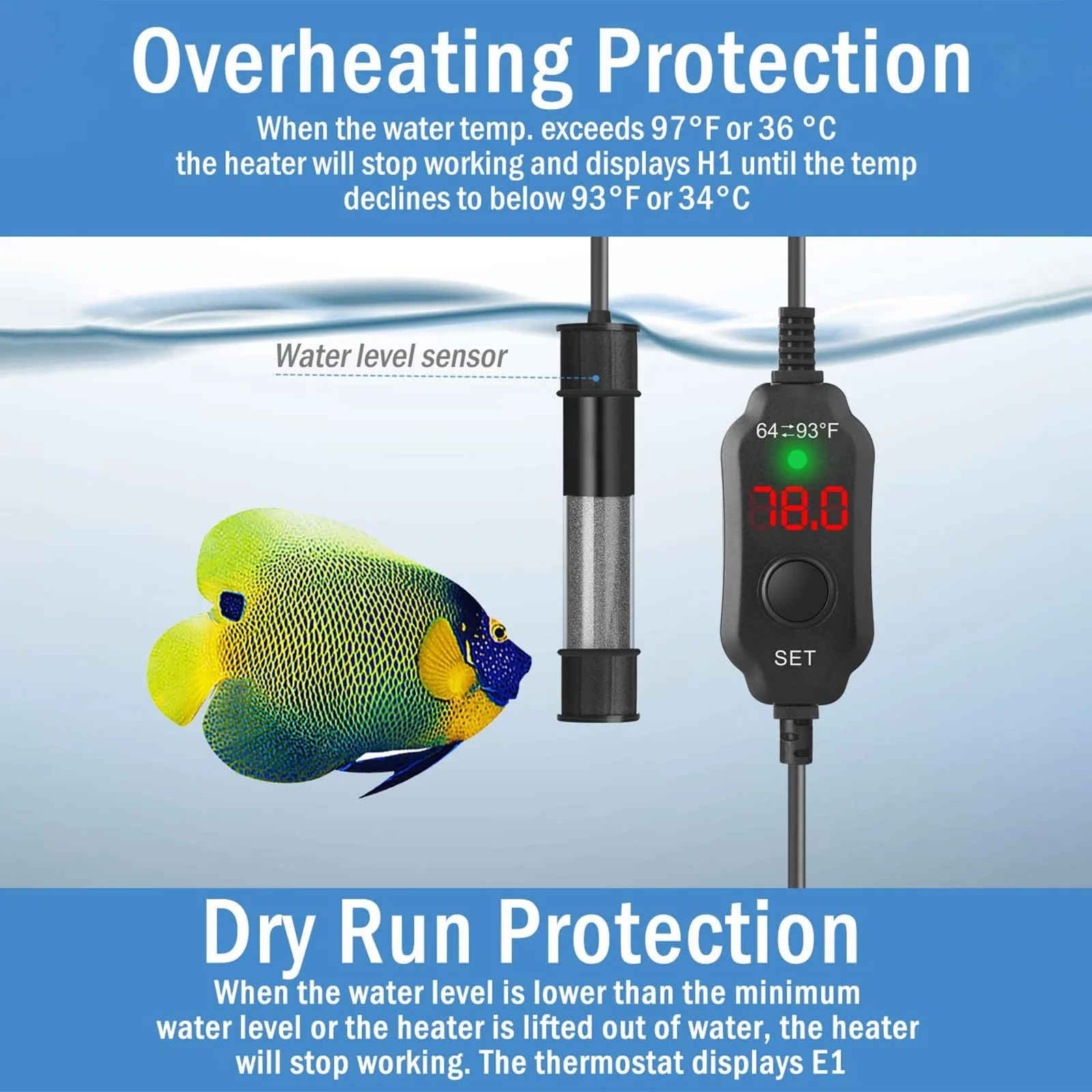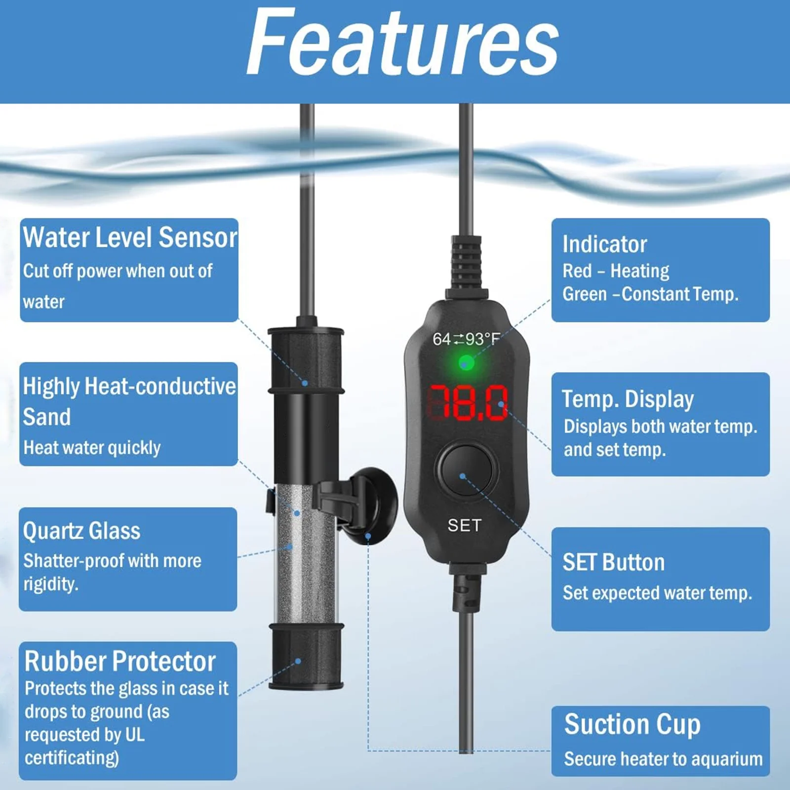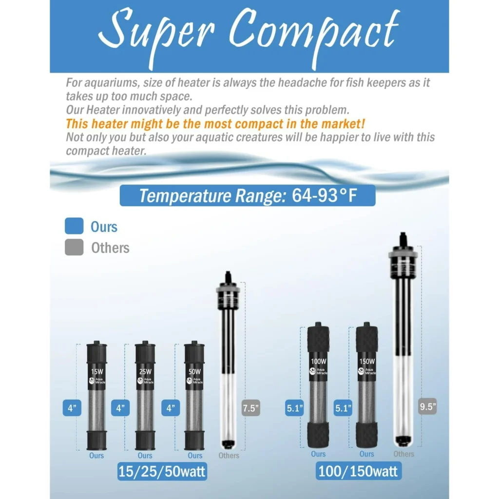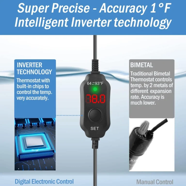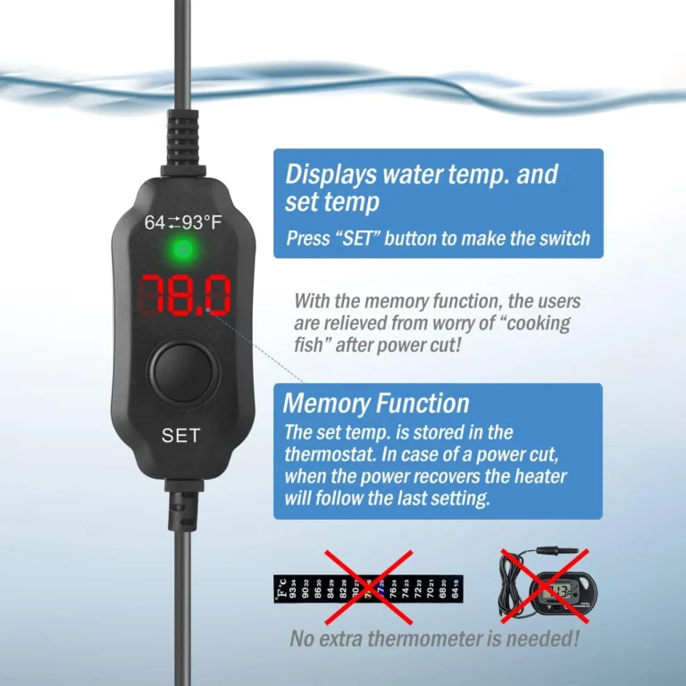 Taucken Mini Aquarium Heater offers an ultra-compact design, perfect for discreet placement in your fish tank heater setup. With rapid heating capabilities and precise temperature control, it maintains a consistent range of 64-93°F. Safety features include automatic shut-off for low water levels and overheating. Its versatile design suits both fresh and marine environments, making it ideal for aquariums, turtle tanks, and even plant seedlings. Enjoy peace of mind with this powerful yet space-saving fish tank heater solution for your aquatic needs!