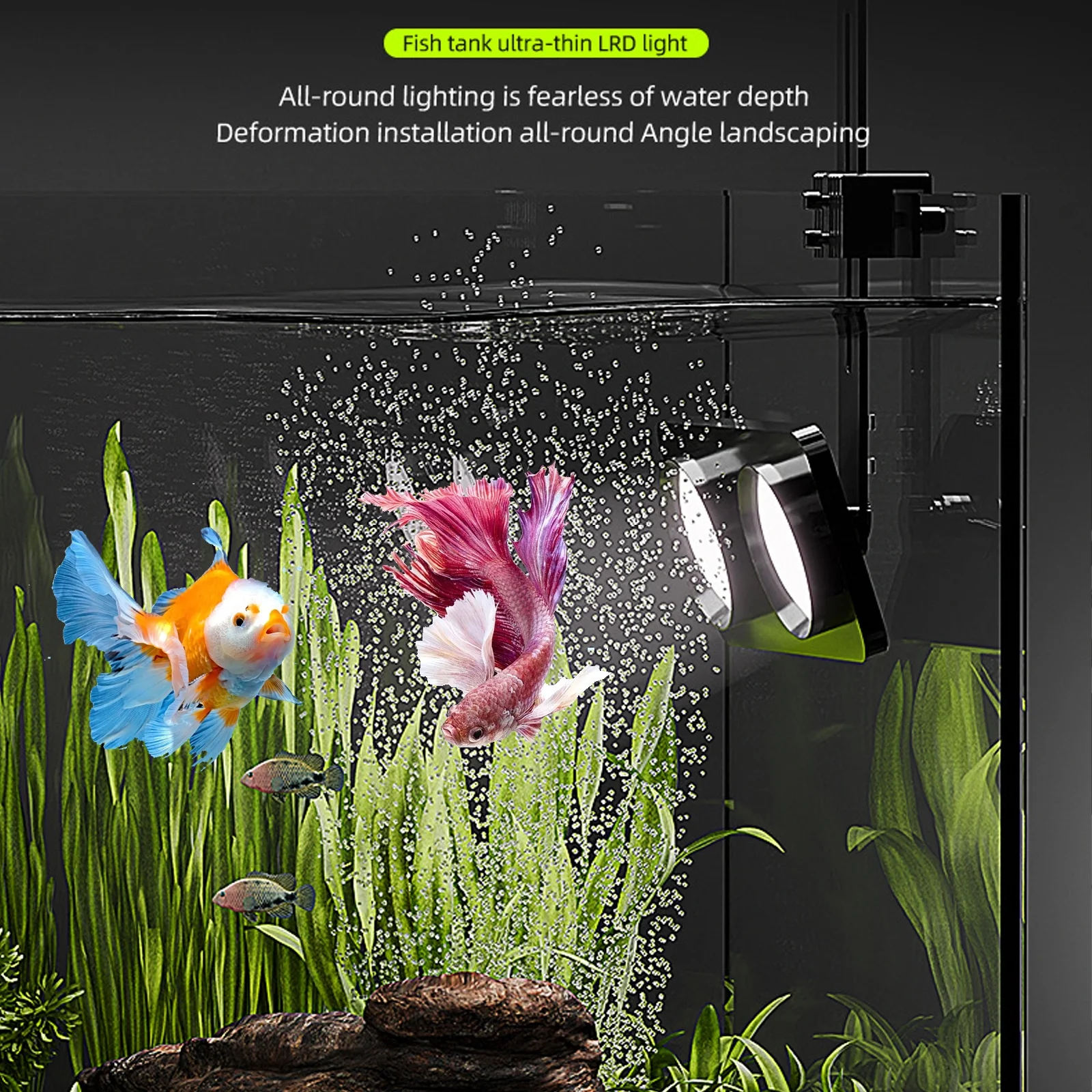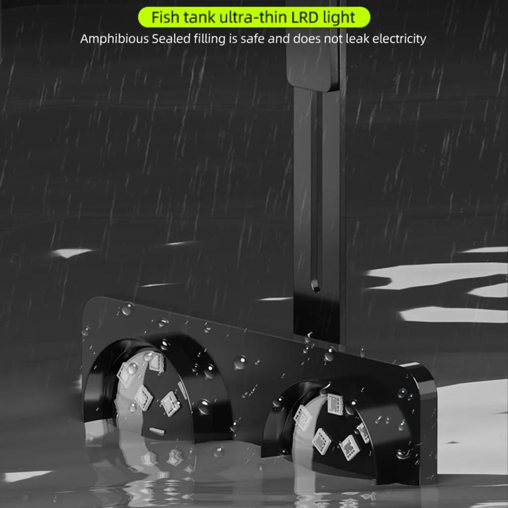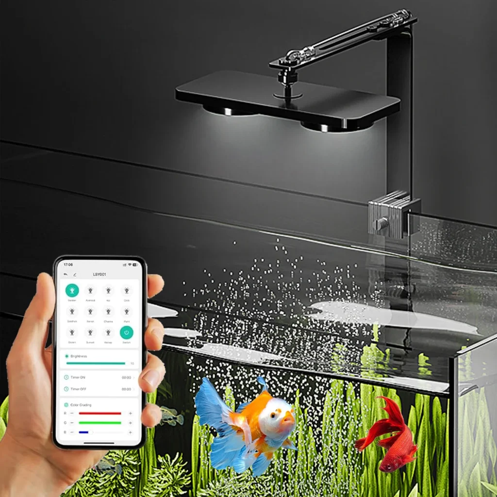 · The smart LED aquarium light features Bluetooth and push button control. You can easily manage and adjust the aquarium light at any time, and the rainbow light effect of the light beads can create a sparkling water effect