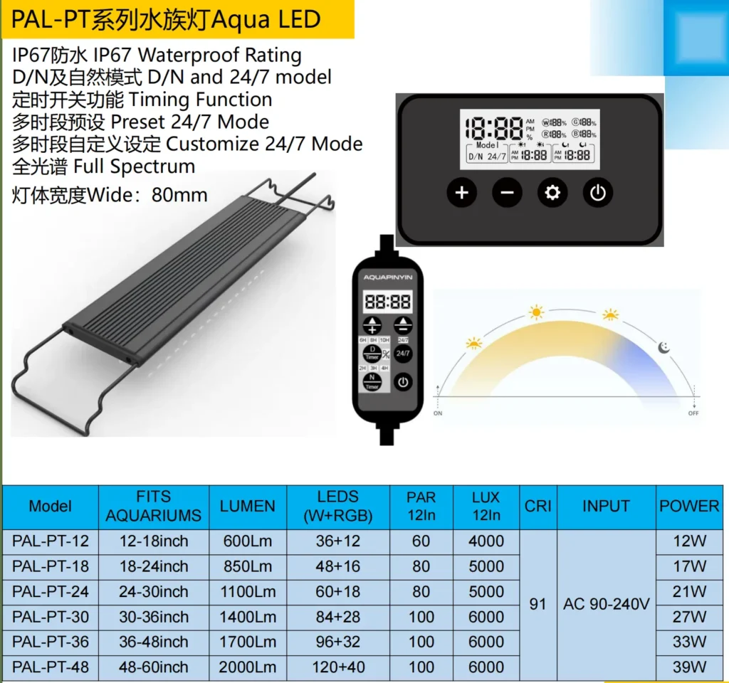 The PAL-PT AguaLED redefines aquarium lighting with its 80mm ultra-slim profile – delivering lab-calibrated full spectrum illumination that fuels coral photosynthesis and intensifies fish coloration in reef or planted tanks.