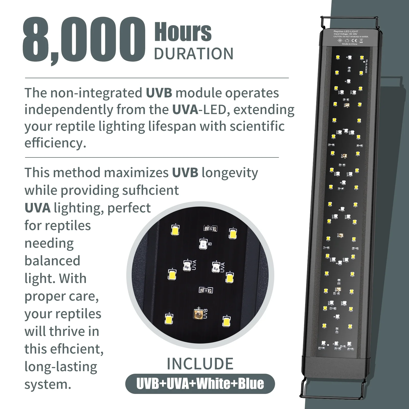 Important Notes – ① For best results, use professional tools to check accurate output levels (UVB card results may be inaccurate). ② The LED light emits cool white light without producing heat. ③ Our expert team is available 24/7—feel free to reach out anytime for support.