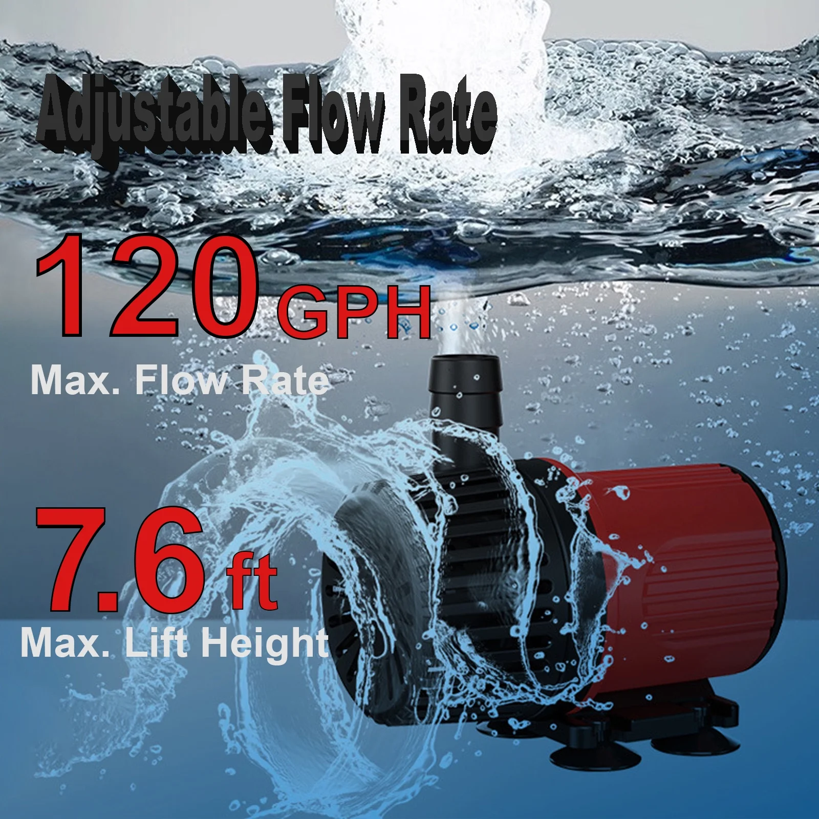 💦4-Speed Adjustable Flow: Choose from 32GPH (2.3ft), 59GPH (4.9ft), 85GPH (6.2ft), or 120GPH (7.6ft) for the right power in any setup—from gentle aquarium flow to powerful water fountain pump needs.